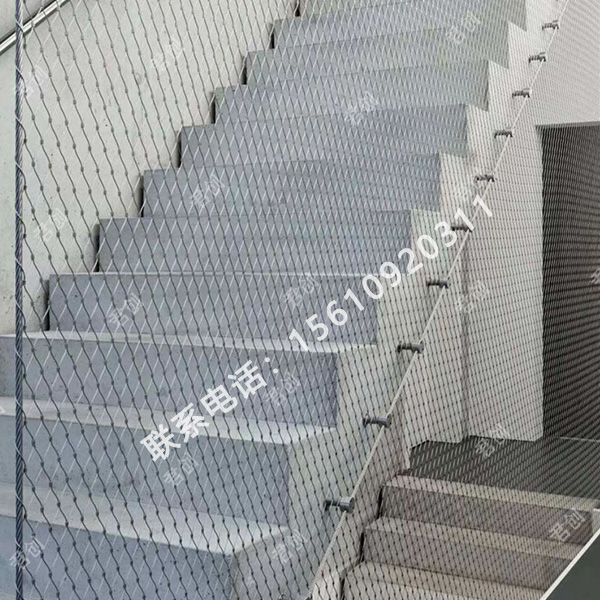 樓梯防護繩網(wǎng):不銹鋼繩網(wǎng)(扶桿圍欄網(wǎng))(扶桿防護網(wǎng))(扶桿軟網(wǎng))(扶桿柔性網(wǎng))是由不銹鋼絲繩上下絞織與鋼套擠壓而成,鋼絲繩直徑有1.0、1.5、2.0、3.0mm,鋼絲繩結(jié)構(gòu)有7*7、7*19、1*19等,材質(zhì)有304、304L、316、316L,其次我們還可以提供熱鍍鋅鋼絲繩網(wǎng)產(chǎn)品。鋼套材質(zhì)主要采用不銹鋼套,其它還有鋁套、銅套、銅鍍錫套以供客戶選擇。